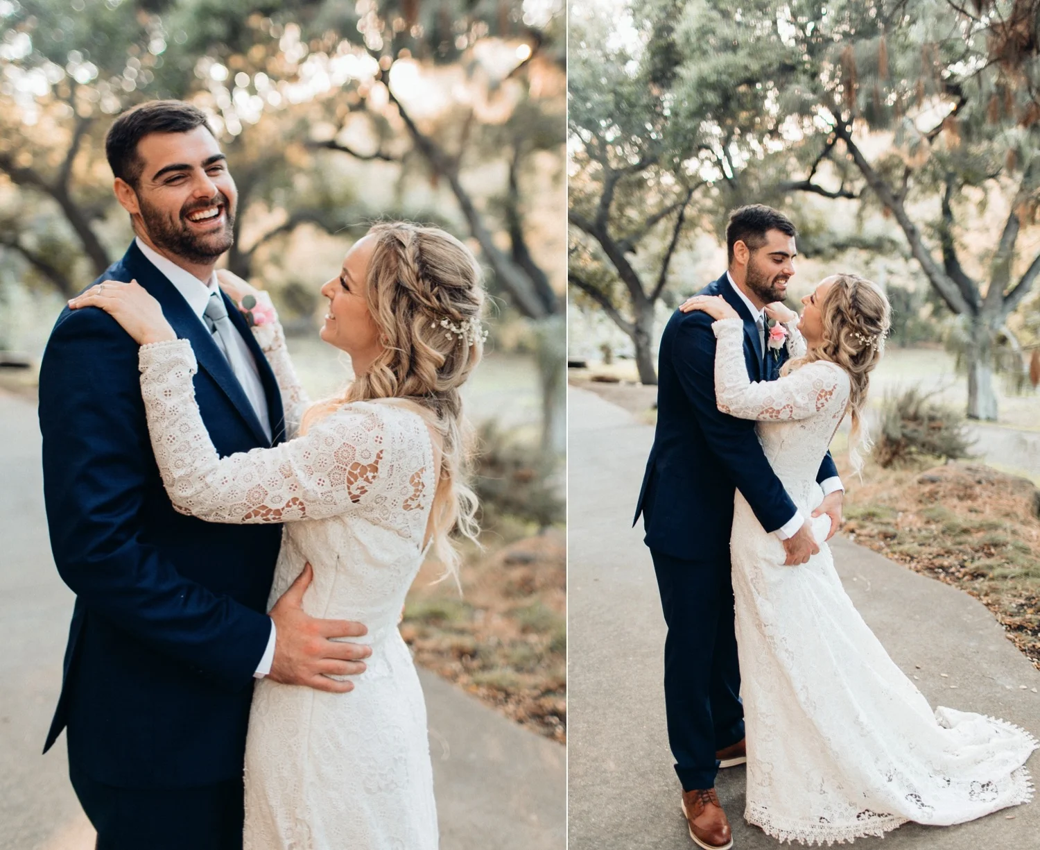 While photographing the beautiful newlyweds after they tied the knot (they didn’t see each other before their ceremony and WOW Garrett’s face did make me cry when he first saw Kati thank you for asking), they were completely effortless with each other. Every time I pressed the shutter, there was a new detail to capture—from Kati’s sweet smile each time Garrett touched or kissed her, to Garrett’s cheek-to-cheek grin when Kati jumped in his arms. Each emotion and moment felt so authentic and joyful. These two love each other SO beautifully, calmly, and effortlessly, and I felt like a very lucky third wheel.