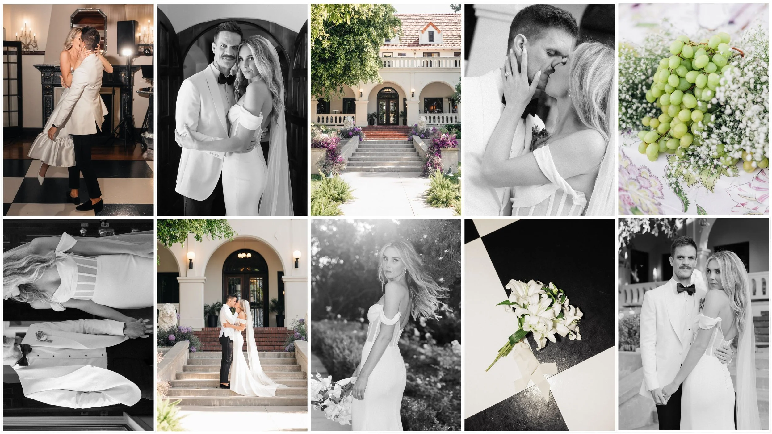 The dinner setup was moody magic, with custom tablecloths adorning tables lined with candelabras and arrangements of grapes and florals. In a tender nod to the couple’s very first date, a single Oreo sat on each napkin, mirroring the thoughtful gesture Michael made when he first met Rachel. :’) After dinner, a saxophonist led a PARADE to the dance floor, where everyone partied until the wee hours of the night.